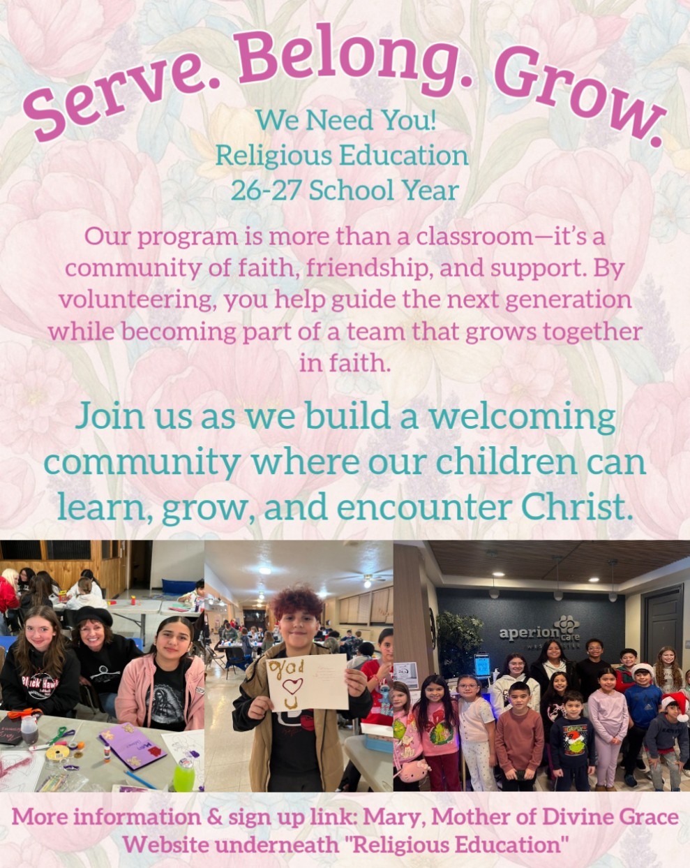 When you join our program, you’re not just signing up to help—you’re becoming part of a faith-filled community that supports and encourages one another.